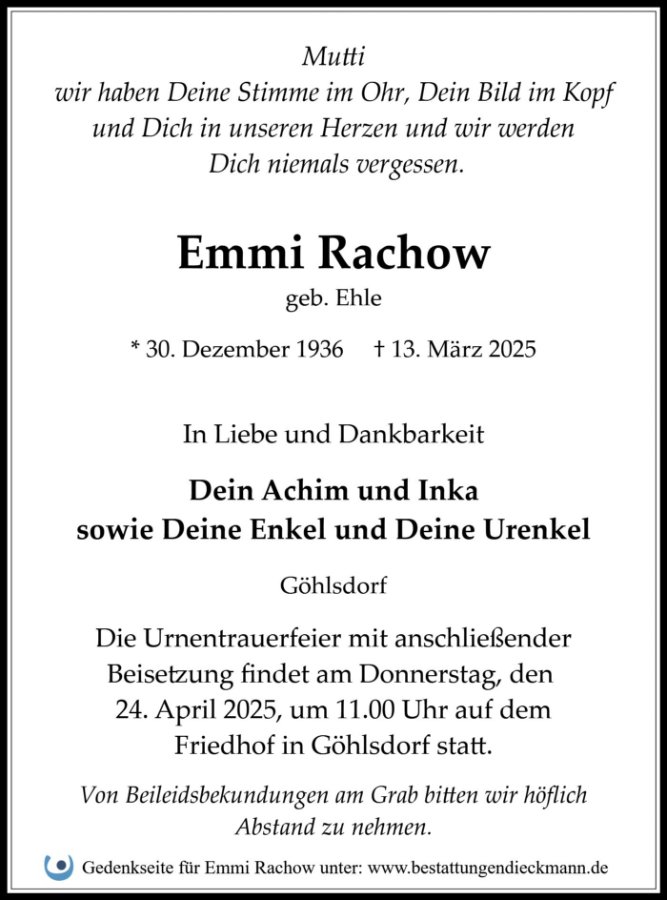 Emmi Rachowgestorben am 13. März 2025