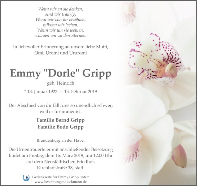 Hiermit möchten wir der ganzen Familie unser Beileid ausdrücken. Wir wünschen euch ganz viel Kraft alles durchzustehen. Eure Mutti hatte ein aufregendes Leben, mit vielen Höhen und Tiefen und hat alles super gemeistert. Sie war eine tolle, stark, fröhlich, weltoffene und liebenswerte Frau.