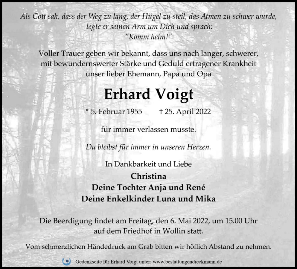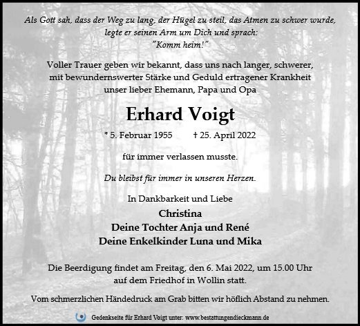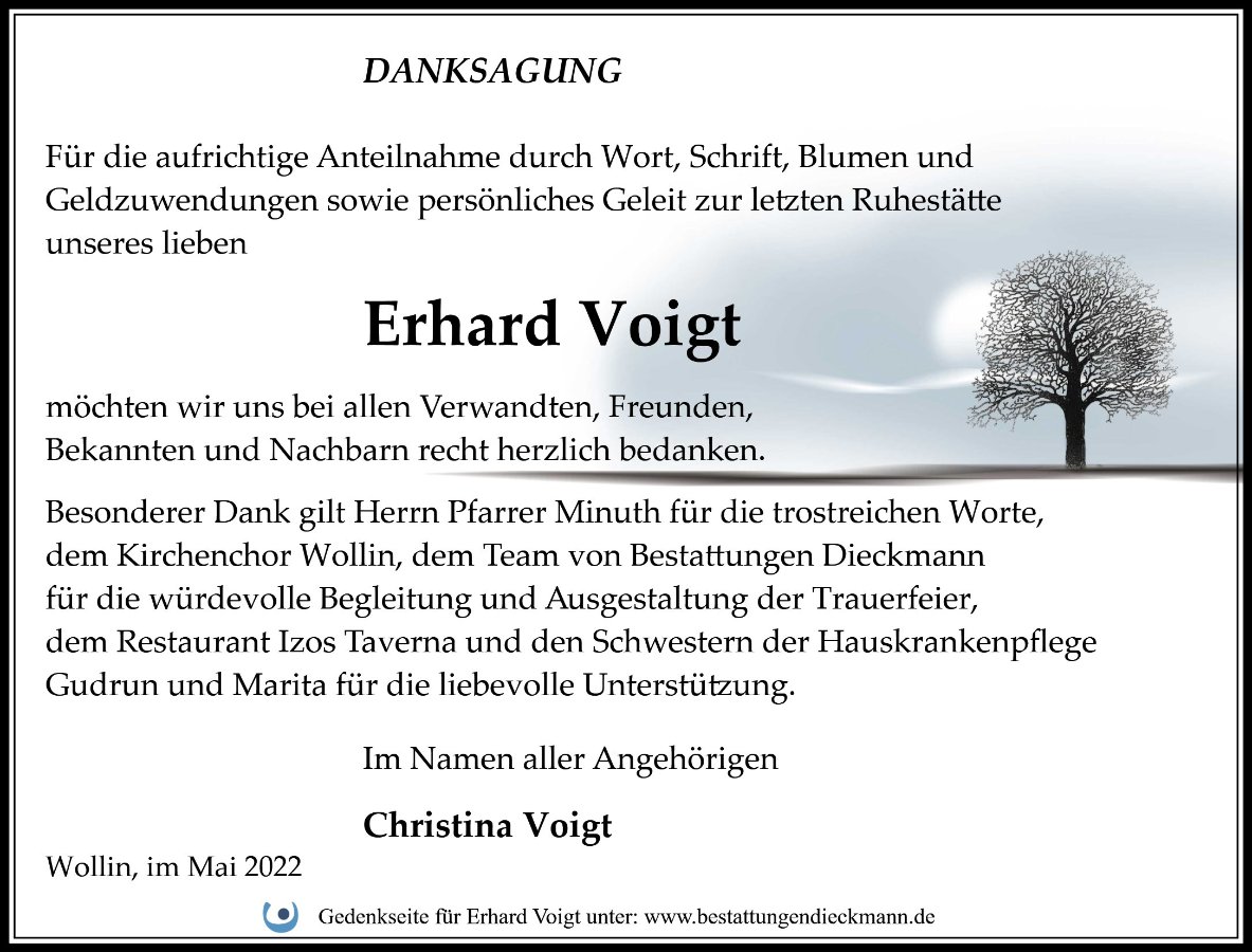 gestorben am 25. April 2022 in Wollin