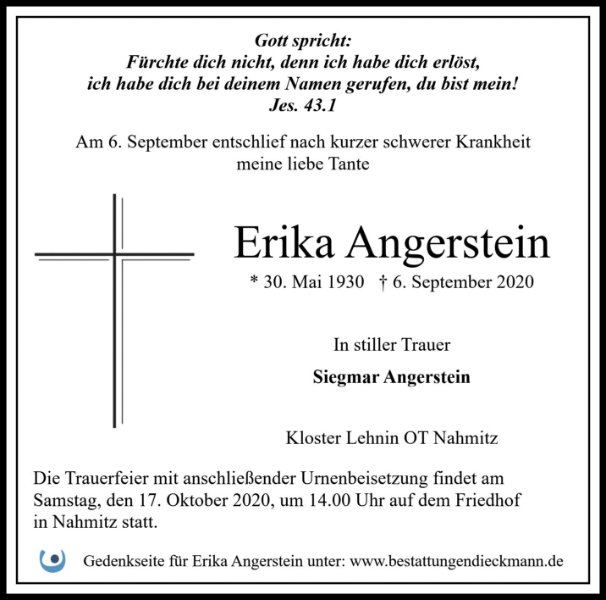 gestorben am 6. September 2020 in Kloster Lehnin OT Grebs