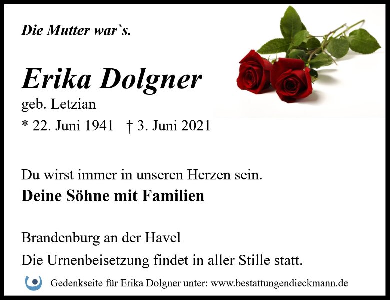 Erika Dolgnergestorben am 3. Juni 2021