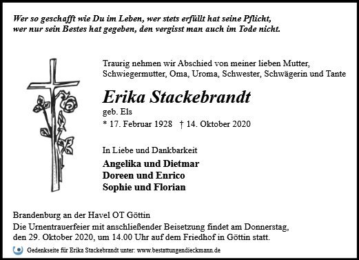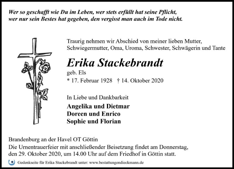 gestorben am 14. Oktober 2020 in Brandenburg an der Havel OT Göttin