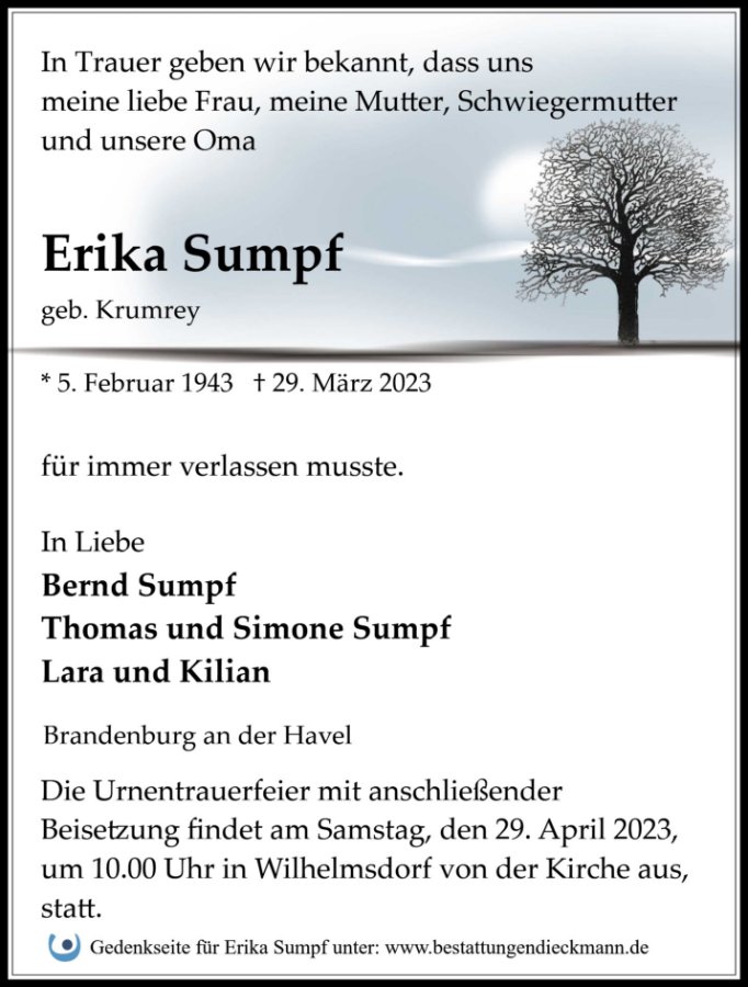 gestorben am 29. März 2023 in Kloster Lehnin OT Lehnin