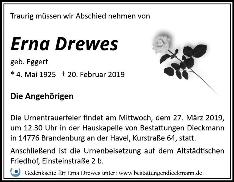Liebe Familie von Erna Drewes ,