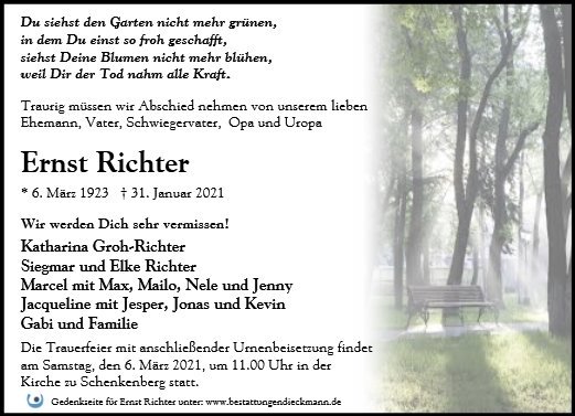 wir wünschen Ihnen für die kommende Zeit viel Kraft und dass es Ihnen gelingt, dankbar auf die positiven Erinnerungen zurückzublicken. Diese Gedenkseite möge Ihnen dabei helfen, Ihre Trauer zu teilen und das Andenken gemeinsam wachzuhalten.