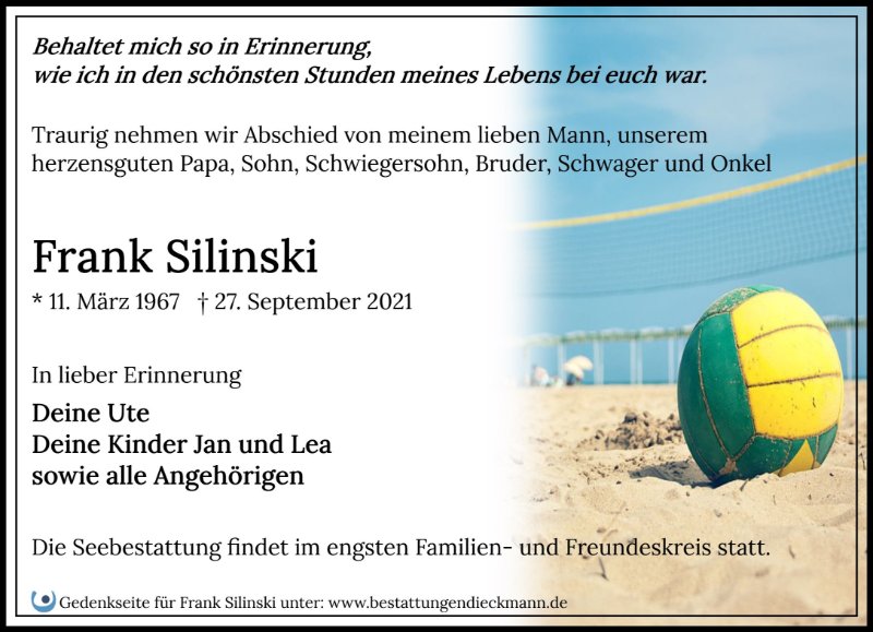 Wir trauern um unseren Schwager Frank.
