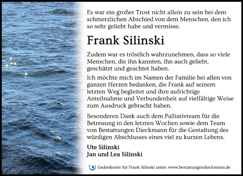 Die Nachricht hat uns erschüttert. Lieber Frank,