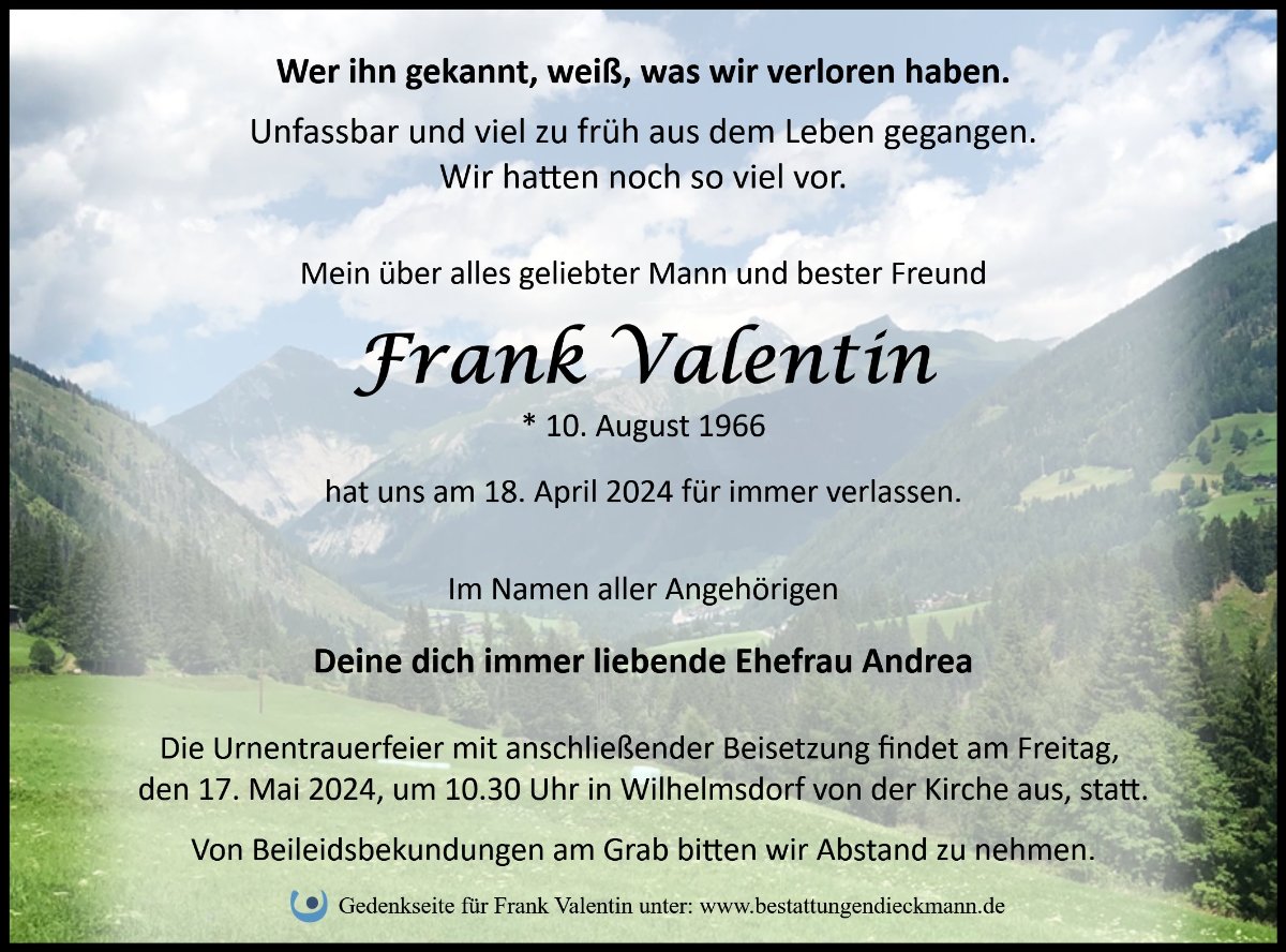 Viel zu früh und unerwartet! In aufrichtiger Erschütterung und Anteilnahme einen letzten Gruß von der ehemaligen Zä,der Sie für langeZeiten Ihr Vertrauen schenkten! Danke und auf Wiedersehen in einer anderen Dimension.