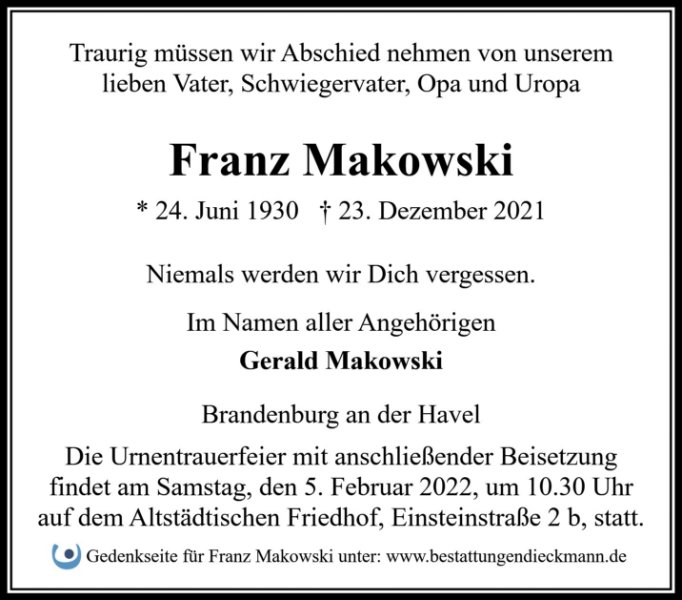 gestorben am 23. Dezember 2021 in Brandenburg an der Havel