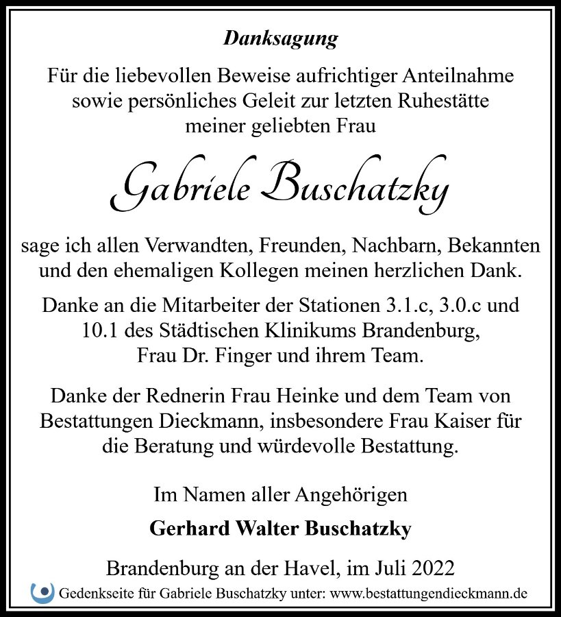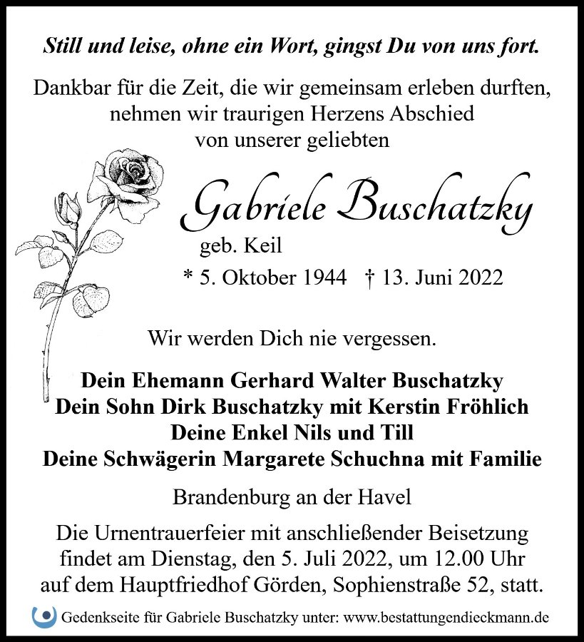 Gabriele Buschatzkygestorben am 13. Juni 2022