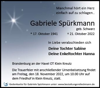 gestorben am 21. Oktober 2022 in Brandenburg an der Havel OT Klein Kreutz