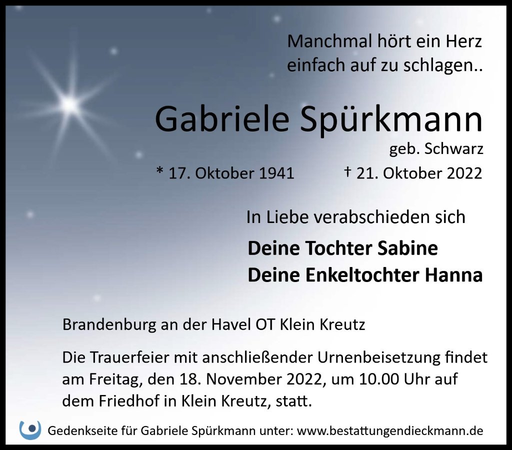 Gabriele Spürkmanngestorben am 21. Oktober 2022