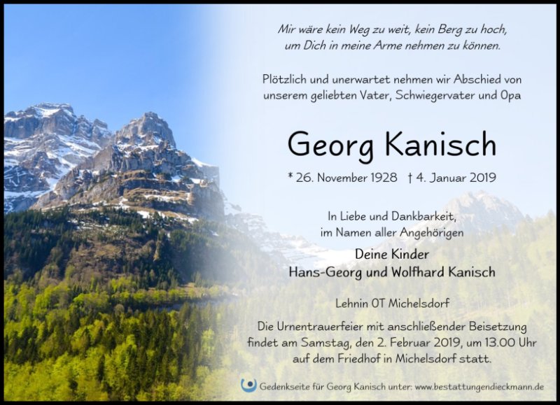 wir wünschen Ihnen von Herzen viel Kraft, dass Sie Menschen um sich haben, die Ihnen in dieser schweren Zeit beistehen und Halt geben. Zusätzlich können Sie auf dieser Gedenkseite Erinnerungen teilen und so das Andenken gemeinsam wachhalten.