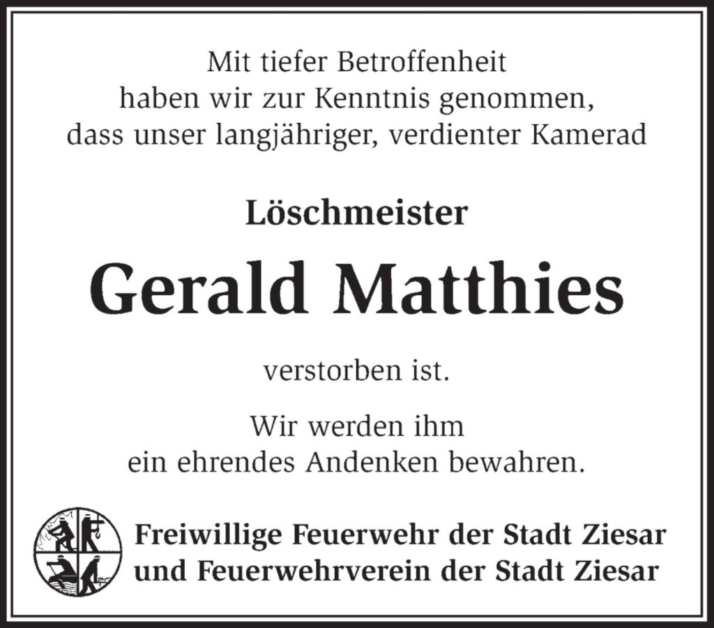 Gerald Matthiesgestorben am 10. Juni 2022