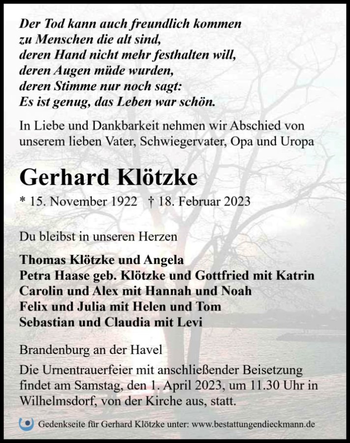 Gerhard Klötzkegestorben am 18. Februar 2023