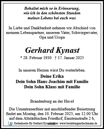 gestorben am 17. Januar 2025 in Brandenburg an der Havel