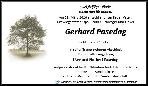 Liebe Familie von Gerhard Pasedag,