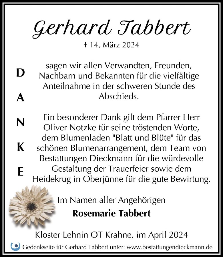 gestorben am 14. März 2024 in Kloster Lehnin OT Krahne
