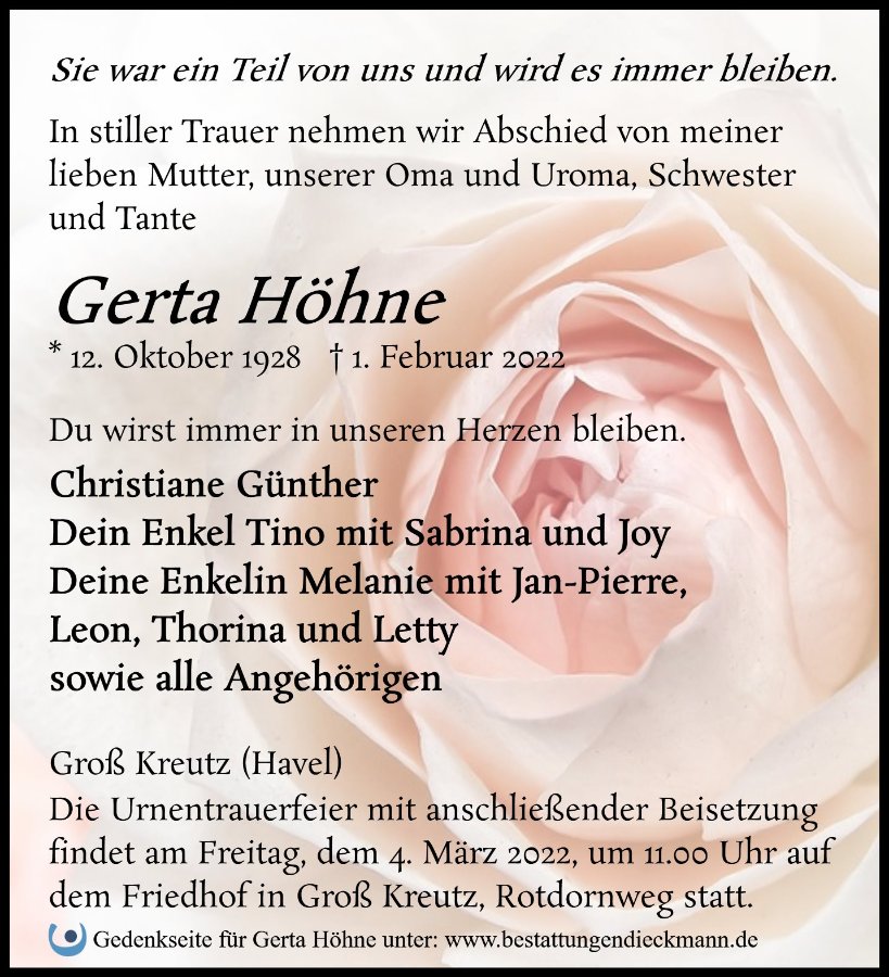 wir wünschen Ihnen von Herzen viel Kraft, dass Sie Menschen um sich haben, die Ihnen in dieser schweren Zeit beistehen und Halt geben. Zusätzlich können Sie auf dieser Gedenkseite Erinnerungen teilen und so das Andenken gemeinsam wachhalten.