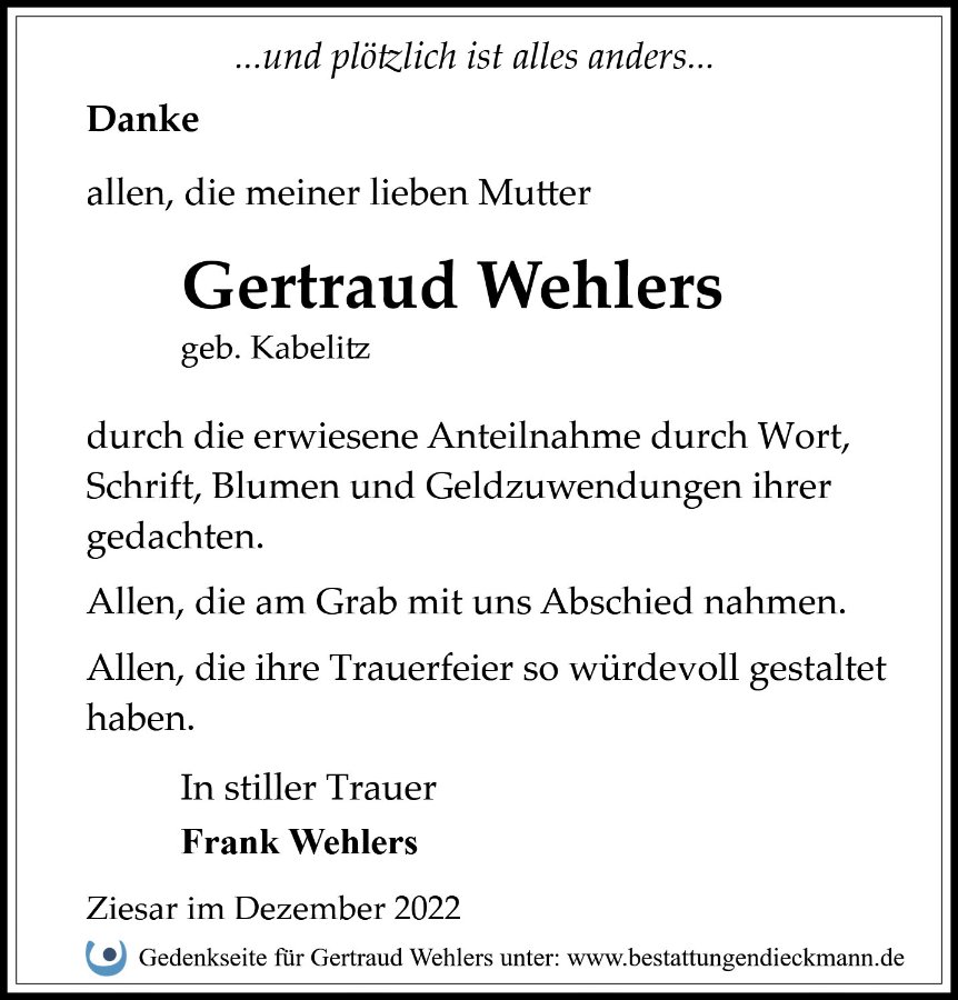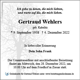 gestorben am 4. Dezember 2022 in Kloster Lehnin OT Lehnin