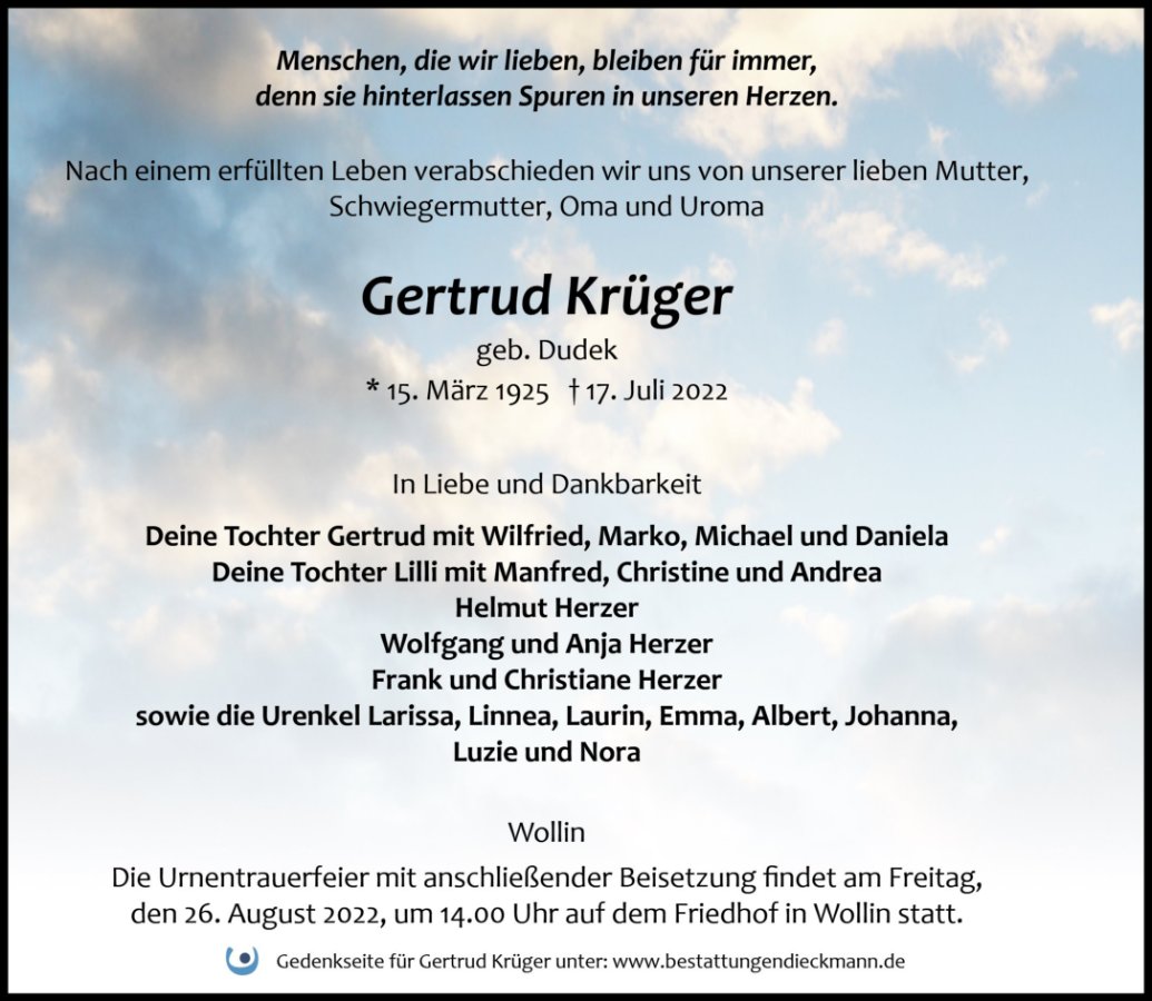 Lesen Sie hier die Anzeigen und Trauerpost!