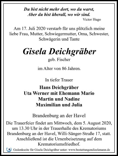 Gisela Deichgräbergestorben am 17. Juli 2020