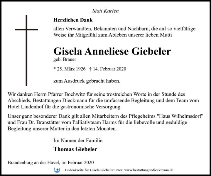 Gisela Giebelergestorben am 14. Februar 2020