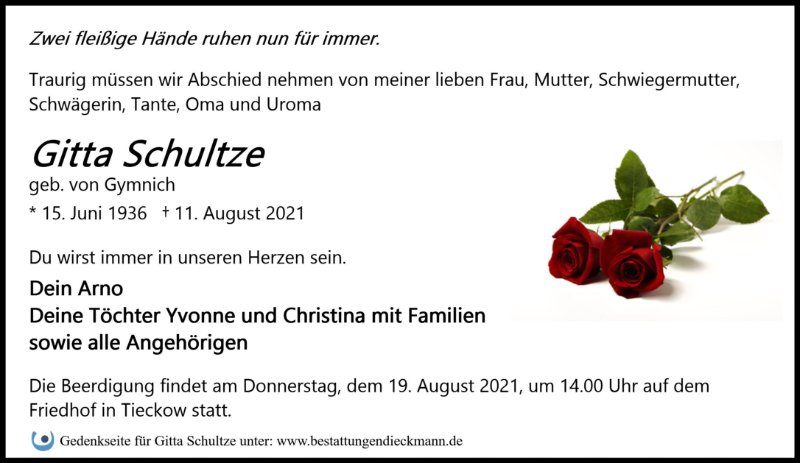 gestorben am 11. August 2021 in Havelsee OT Pritzerbe