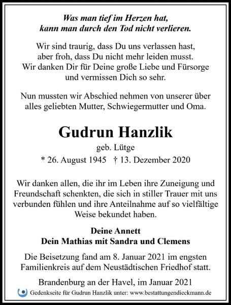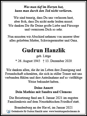 Gudrun Hanzlik geb. Lütge