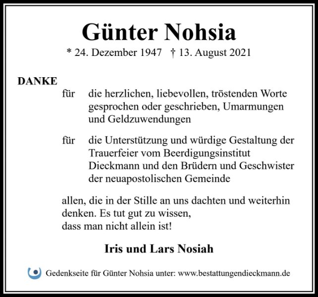 Günter Nohsiagestorben am 13. August 2021