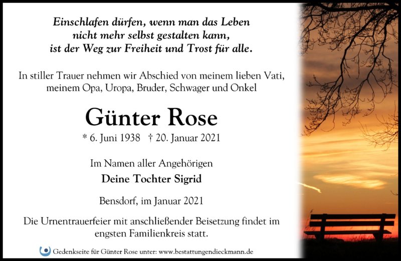 Günter Rosegestorben am 20. Januar 2021