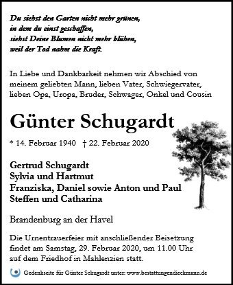 Liebe Familie von Günter Schugardt,