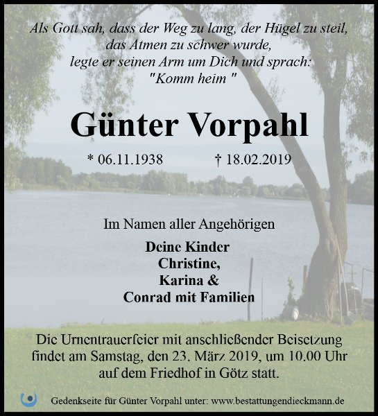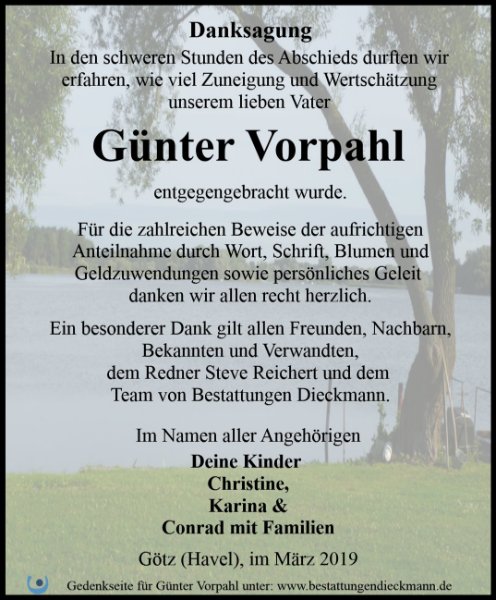 Liebe Familie von Günter Vorpahl,
