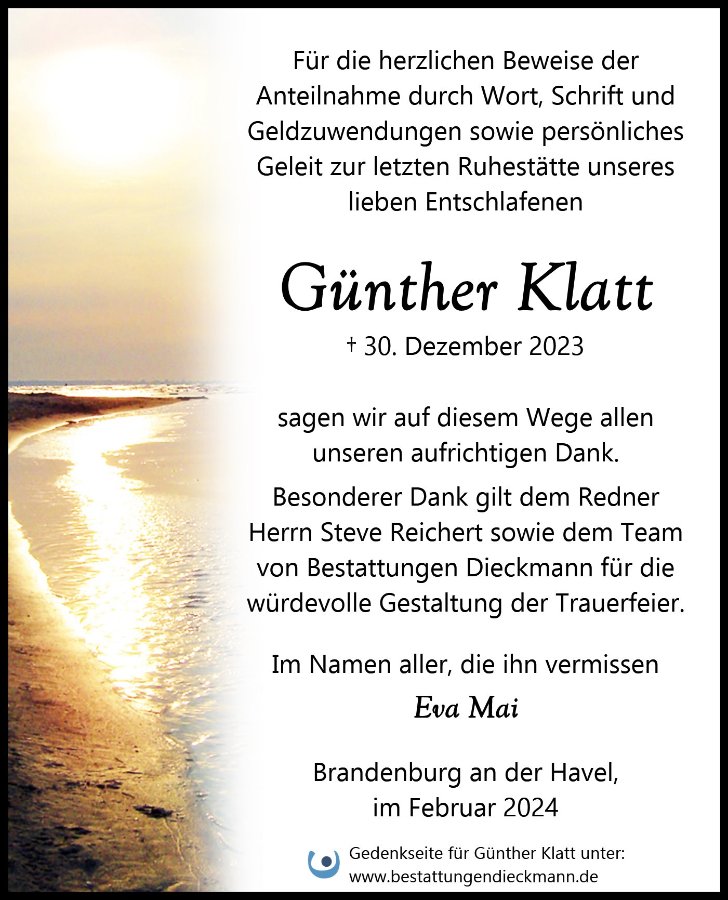Günther Klattgestorben am 30. Dezember 2023