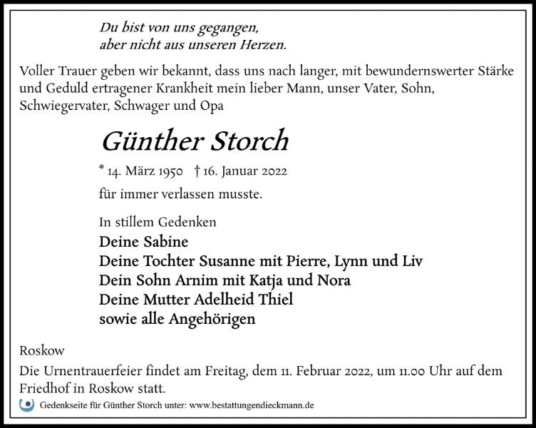 ich möchte Dir und Günthers Kindern mein tiefes Beileid aussprechen.