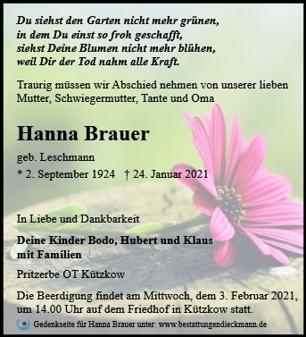 gestorben am 24. Januar 2021 in Havelsee OT Pritzerbe