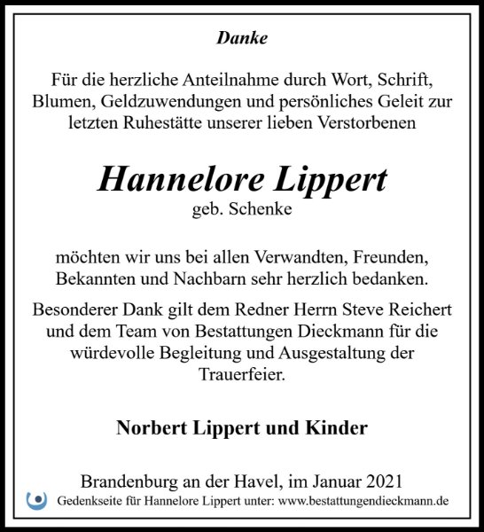 Hannelore Lippertgestorben am 2. Januar 2021