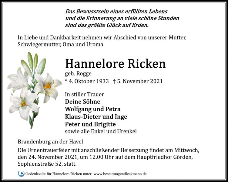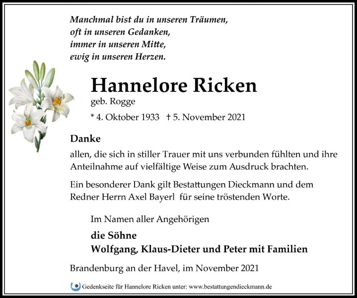 LLieber Wolfgang, der Tod gehört zu unserem Leben. Wir haben erfahren, dass deine Mutti verstorben ist. Das ist gerade vor Weihnachten und in dieser Jahreszeit ein schrecklicher Augenblick. Wir sprechen dir und deinen Angehörigen auf diesem Weg unser aufrichtiges Beileid aus und wünschen euch in dieser schweren Zeit viel Kraft.