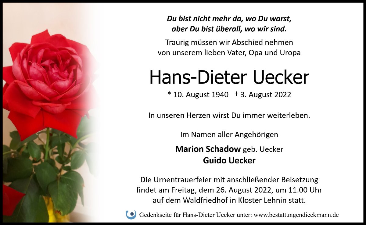 gestorben am 3. August 2022 in Kloster Lehnin