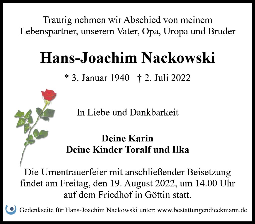 Hans-Joachim Nackowskigestorben am 2. Juli 2022