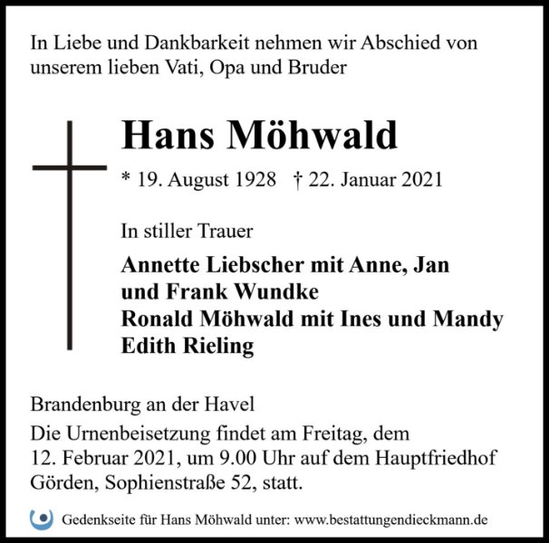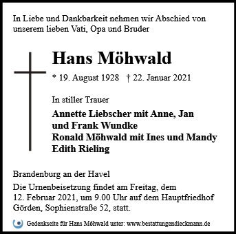 gestorben am 22. Januar 2021 in Brandenburg an der Havel