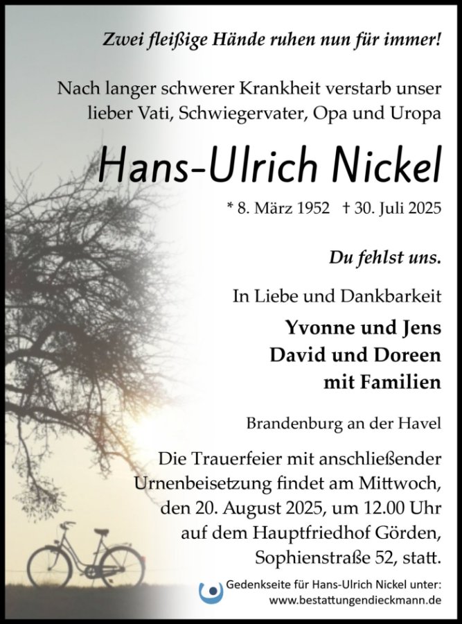 gestorben am 30. Juli 2025 in Lutherstadt Wittenberg