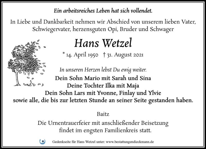Ruhe in Frieden, lieber Hans.
