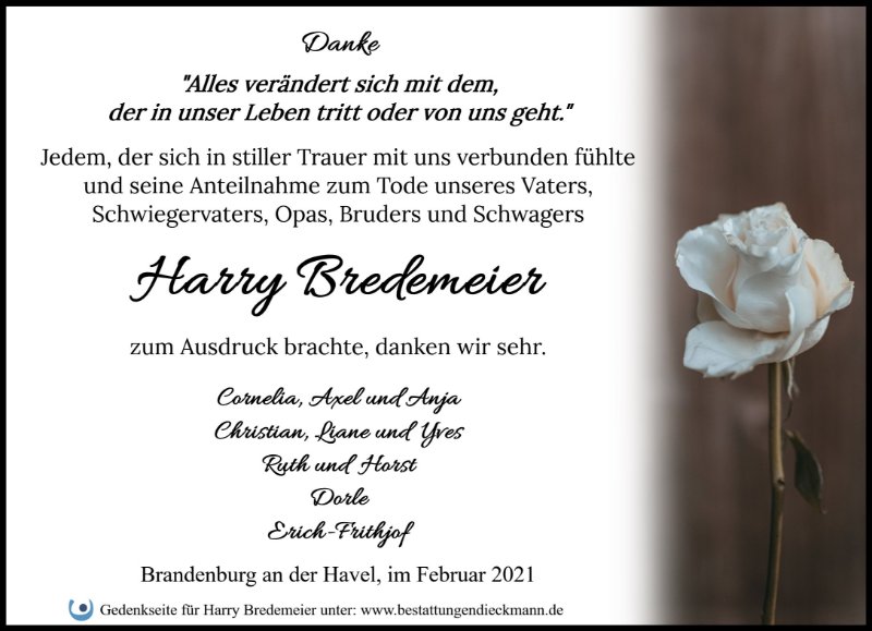 in diesen Tagen fühlen wir mit Ihnen und wünschen Ihnen von Herzen, dass Sie aus den glücklichen Erinnerungen Kraft schöpfen, um positiv in die Zukunft zu gehen. Diese Gedenkseite möge Ihnen dabei helfen, Ihre Trauer zu teilen und das Andenken gemeinsam wachzuhalten.