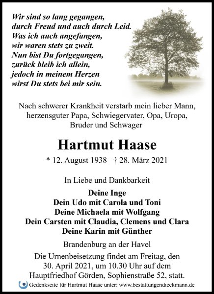Hartmut Haasegestorben am 28. März 2021