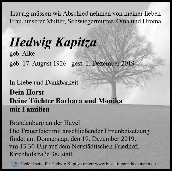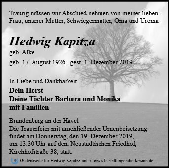 gestorben am 1. Dezember 2019 in Brandenburg an der Havel