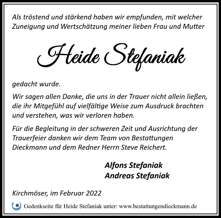 Liebe Familie Stefaniak,