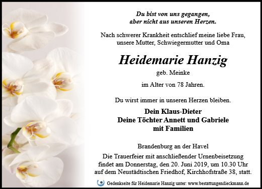 gestorben am 1. Juni 2019 in Brandenburg an der Havel