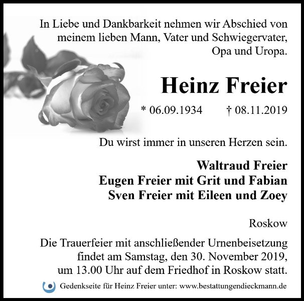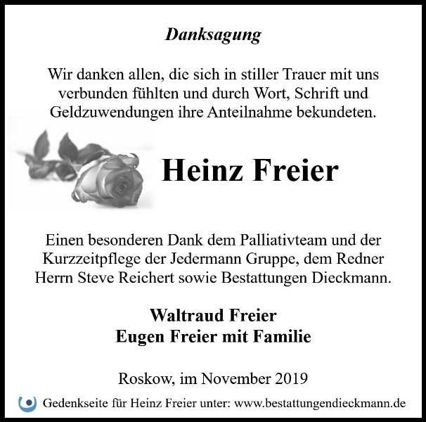 Liebe Familie von Heinz Freier,