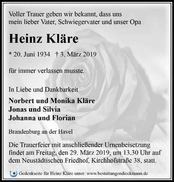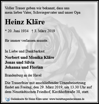 Liebe Familie von Heinz Kläre,